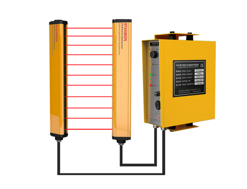 Güvenlik Işık Perdesi Fotoelektrik Güvenlik Cihazı, endüstriyel ortamlarda personeli ve ekipmanı korumak için tasarlanmış gelişmiş bir güvenlik sistemidir. Kızılötesi ışık ışınlarından oluşan bir perdeyi yayan ve algılayan bir verici ve bir alıcıdan oluşur. Bir nesne veya kişi ışık ışınlarını kestiğinde cihaz ilgili makineye anında bir durma sinyali göndererek kazaları önlemek amacıyla çalışmasını durdurur. Bu cihaz genellikle preslerin, robotların ve konveyörlerin yakını gibi hareketli makinelerden kaynaklanan yaralanma riskinin bulunduğu alanlarda kullanılır. Güvenlik Işık Perdesi Fotoelektrik Güvenlik Cihazı, endüstriyel ortamlarda personeli ve ekipmanı korumak için tasarlanmış gelişmiş bir güvenlik sistemidir.